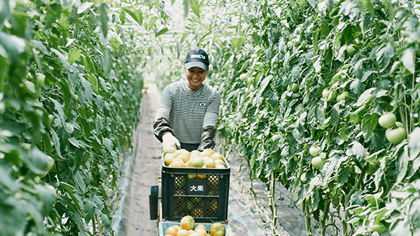 By comprehensively utilizing heat-blocking shades, tractors, and work sheds all developed with SOLAMENT™ we optimize producers’ working environments and support the stable continuation of agriculture. For example, by branding region-specific crops harvested in this way, we enhance local appeal centered on specialty products, thereby linking agriculture to the revitalization of communities.