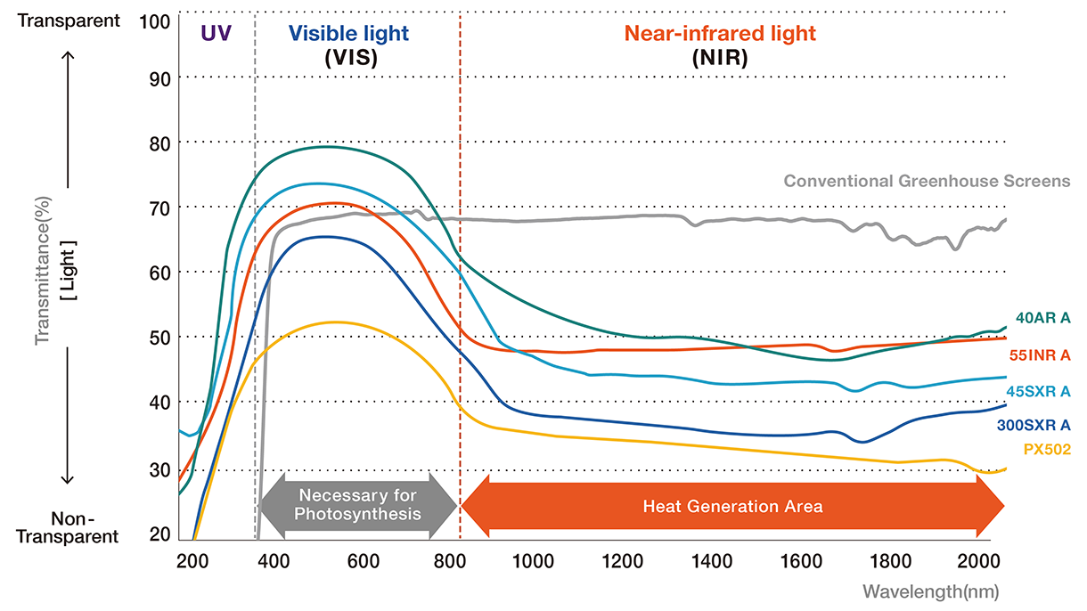 With creative weaving methods, multiple variations in the transmission of near-infrared light and visible light are available—allowing selection based on crop type, region, and growing environment.